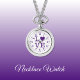 Presente do Necklace Watch. Com a palavra "amor" e uma forma cardíaca substituindo a letra O. Purple e White