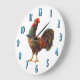 Um relógio de cozinha retrógrado com números de cor e arte de fundo de um galo colorido do trabalho de arte de etiqueta de caixa vintage. Clique em Personalizar para adicionar seu nome ou mensagem, alterar as cores do plano de fundo e muito mais.