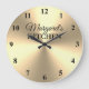 design de relógio de parede de cozinha de textura metálica de fundo ouro elegante com números.