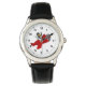 Assista com design com uma ilustração de um pinguim voando num avião vermelho; ilustrada por Radka Kavalcova / MaxiHarmony