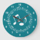 Relógio de Design de Notas Musicais com cor de fundo personalizável. Nota: As cores mais escuras funcionam melhor.