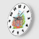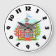Os edifícios escolares vêm em todos os estilos. Este design é um prédio de escola legal que é um velho pequeno tipo de chalé. O prédio parece bonito e tem uma torre de sino no topo do telhado. Este design de prédio da escola parece excelente neste relógio. Perfeito para si mesmo ou como presente