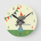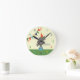 Um relógio com ilustração de um elefante de circo parado numa plataforma vestindo um chapéu laranja. Personalize com seu nome no canto inferior direito do elefante.