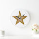 design moderno com ouro "brilhante" e estrela branca sobre fundo branco. Relógio com um design personalizável para você personalizar com seu próprio texto, imagens e ideias. Note que esta é uma imagem impressa criada com fotografias originais e técnicas digitais, que não brilha nem contém faíscas reais.
