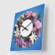 Traga um toque de primavera para dentro do seu quarto com este Relógio Floral na parede... é sempre primavera. A coroa é feita de vários tipos diferentes de flores e a cor do fundo pode ser alterada para corresponder exatamente à sua decoração.
