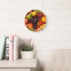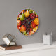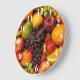 Uma deliciosa foto de frutas inteiras misturadas dá o tom para este relógio alegre - que ficaria perfeito em qualquer restaurante, cozinha doméstica ou cantina. O relógio termina com números brancos, marcadores de minuto vermelho e borda laranja queimada.