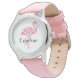 Um relógio de garota rosa com flamingo rosa e o nome do seu filho.