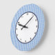 gingham cheque azul e relógio branco é perfeito para uma casa no campo. Este relógio é baseado no tradicional design de interiores encontrado em casas por toda a América. Este fundo na moda e bonito adicionará um toque tradicional a qualquer sala.