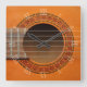 Uma aproximação de uma guitarra clássica ou espanhola com um rosetas decorativo ao redor do buraco de som em um relógio com algarismos romanos brancos. Disponível como um relógio redondo ou quadrado.