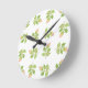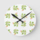 Um bonito relógio de parede redondo com um padrão de rosebudas cor-de-rosa sobre um fundo branco de um design pintado à mão por Judy Adamson.