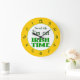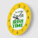 Este engraçado relógio da parede diz que não estou atrasado, estou no Irish Time, com letras Celta de trabalho em verde, números atrás em um fundo laranja.