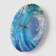 Um relógio com um impressão de onda abstrato apresenta um design dinâmico e fluente, onde as ondas são representadas por meio de curvas e linhas fluidas em negrito, varridas. O impressão pode combinar tons vibrantes de azul, turquesa e branco, evocando o movimento natural da água, ou usar cores contrastantes como preto, cinza ou até mesmo tons de neon para um apelo mais artístico e moderno. O estilo abstrato poderia envolver formas geométricas ou um design mais orgânico, de forma livre, criando um senso de movimento e energia. O olhar geral é atraente e artístico