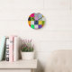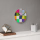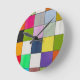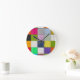 Um relógio de parede moderno com um padrão geométrico quadrado colorido, combinando design artístico com função cotidiana. Com tons de rosa, verde, azul, amarelo e preto, adiciona um toque alegre a qualquer espaço de trabalho, sala de estar ou cantinho de leitura. Perfeito para quem ama decorações criativas com uso prático.