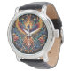 Faça uma declaração corajosa com este relógio de pulso impressionante com uma ascensão fênix vibrante das chamas, cercada por intrincados padrões florais. O trabalho de arte detalhado no rosto do relógio mostra tons ricos de laranja, amarelo e azul, simbolizando renovação e força. Em conjunto com uma fina correia de couro preto e um estojo de tom prateado, este relógio combina a arte com elegância. Perfeito para aqueles que apreciam designs míticos e acessórios únicos, este relógio é uma peça eterno que adiciona um toque de poder e sofisticação a qualquer equipamento."