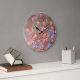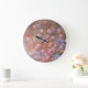 O relógio de parede apresenta uma face redonda, com um design floral que apresenta flores vibrantes, vermelhas e púrpuras. Estas flores estão elegantemente espalhadas pelo fundo do relógio, dando-lhe uma aparência nova e viva. Os números do relógio são fáceis de ler, seja numa cor escura contrastante ou numa sombra metálica complementar, permitindo que o padrão floral se destaque. As mãos do relógio, elegantes e minimalistas, adicionam um toque moderno, enquanto o design geral cria um equilíbrio entre beleza e funcionalidade inspiradas na natureza, perfeito para uma peça de decoração na moda.