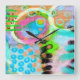 Minha pintura digital abstrato funky faz deste adorável relógio de parede uma obra colorida de arte decorativa!