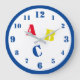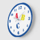 Design apresenta as letras "ABC" em cores primárias e fontes grandes e estendidas. Os números de relógio são exibidos em um impressão azul, fácil de ler. Os 12, 3, 6 e 9 são ligeiramente maiores que os restantes números. Todo o design está cercado em uma borda azul. Também disponível em vermelho.