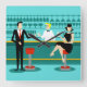 Cada hora é feliz com este Reltro Cocktail Lounge Acrylic Wall Clock. O design moderno do meio século apresenta um vibrante estilo, minimalista, de 1960 desenho de um bar de coquetel clássico. Contra o pano de fundo de uma parede aqua, podemos ver filas de óculos de bebida. Pelo menos podemos ver os teais silhuetas de óculos de bebida. A julgar pelas formas do material, este bar está bem equipado para molhar o assobio, seja qual for a sua preferência pela bebida. Um barman mais competente e personável é manejar o bar com sotaques amarelos. O jovem barman está vestindo uma camisa branca e primitiva com gravata arco preta. Sua boa aparência, cabelo louro e óculos de hipster pretos nos dão todas as razões para acreditar que ele passa seus dias como um ator em luta ou um super-herói. Por um lado, o bonito mixologista está entregando um martini a um cliente do lado oposto do bar. O cliente que espera é um cavalheiro de ombros largos com um terno preto e gravata vermelha. Ele é o tipo de sujeito que é descrito como alto, escuro e bonito mesmo quando ainda é horas até a hora de fechar. Parece que há um banco de bares vermelho e cromo com o nome do Sr. Debonair. No entanto, para não ser presunçoso, ele pergunta, "Desculpe-me. Este assento está ocupado?" Ele está perguntando à garota cabeleira no banco de bares vizinho. Ela é do tipo "garota ao lado", se você vive ao lado de uma beleza perfeita com uma figura que não desiste. Ela está vestindo um vestido preto e segurando um martini em uma mão. Ela espera que ela e o cavalheiro que se aproxima tenham mais em comum que a sua preferência pela bebida e a escolha da cor da roupa. Parece que esta noite ficou interessante. Saúde para você!