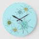 O padrão de relógio de parede acrílico de geleiras atômicas ínicas azônicas de ovo desta Robin apresenta rajadas atômicas icônicas. Isso mesmo! A antiga escola, o fundo azul de ovo de robin com manchas de ouro é o pano de fundo perfeito para a vibrante turquesa, o aipo de salmoura e os círculos verde cor de pera da cozinha. As manchas de cor são colocadas esporadicamente em vários tamanhos com linhas pretas em forma de V sobrepostas para formar as estórias do mod sputnik. Estimulado após um padrão prato de 1950, este design retrorinspirado tem tudo o que você precisa para ser verdadeiramente meio século moderno.