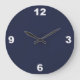Um simples relógio de parede com um fundo azul da meia-noite e grandes números brancos marcando os 12, 9, 6 e 3. Personalize este relógio para adicionar o texto personalizado, alterar as cores de fundo e muito mais.