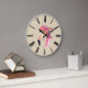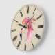 Conheça Fiona. Ela é bonito a rosa e está a rodar o estilo Boho com a sua banda de penas! Relógio de parede com face numérica romana e ilustração de aquarela
