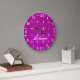 Relógio de parede cintilante cor-de-rosa para raparigas. Design de padrão espumante personalizado com o nome da criança. A decoração das crianças. Enfeites brilhantes para filha/neta. Boa ideia para crianças glamourosas.