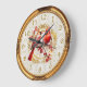 Dourado quadro de aparência é impresso no relógio da parede cardinal. Dois cardeais em um fundo padronizado. Vintage tradicional inspirou design. Obrigados para procurar.