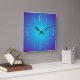 Um design iluminado azul clássico e simplista torna este relógio de parede quadrado. Numerais minimalistas para combinar. Ótimo para presentes de ocasiões especiais ou para sua casa.Observação> Este design é de minha coleção popular de relógios.Sinta-se à vontade para entrar em contato comigo para um design exclusivo para você. Jilly