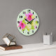 Vintage Wall Clock com Watercolor Flowers em pinks, verdes e amarelos. Mole e feminina com cores pastel perfeitas para o quarto.