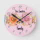 Relógio de Parede, cor-de-rosa, com flores e números pastéis. O nome no relógio pode ser alterado ou removido. Obrigados para a Creative Fabrica para alguns dos elementos na design.