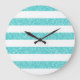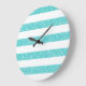 Trendy e divertida Glitter de Olhar Stripes Clock. Este design apresenta um padrão de risca de aparência brilhante e falsa em turquesa. Adicione texto a este design para lhe dar um toque pessoal.