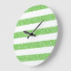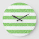 Trendy e divertida Glitter de Olhar Stripes Clock. Este design apresenta um padrão de faixa de aparência brilhante e falsa em verde. Adicione texto a este design para lhe dar um toque pessoal.