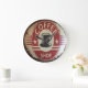 Amantes do café, vocês vão adorar este relógio de parede divertido com um design de placa de compro gráfico e vintage que tem um aspecto tridimensional.