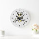 Custom Wall Clock tem um design de arte vetorial fofo de uma coruja monocromática amarela, preta e branca num galho com bagas e folhas.