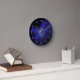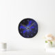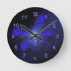 Uma borboleta abstrato em azul elétrico, quase brilha sobre um fundo azul da meia-noite. Os números do relógio são um modelo que você pode limpar se preferir a borboleta sozinha. Nota: Este relógio não brilha no escuro.