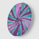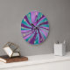 O Relógio de Parede da Limpa de Música Violeta e Teal Swirl. Uma clave de triplo musical roxa escura no centro de uma espiral pirulito de violeta, roxo, burgundy, verde-lacrimejante e mauve. Um presente de excelente para seu músico ou amante de música favorito.