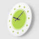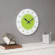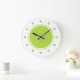 Relógios modernos e brilhantes de paredes de cozinha com lindos círculos geométricos verdes neon e bolinhas que você pode usar para decorar suas paredes com estilo. Um design de na moda para iluminar qualquer cozinha, sala de família ou sala de trabalho ou dormitório. Projetado para senhoras ou adolescentes.
