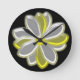 Este relógio maravilhoso apresenta uma imagem digital de uma flor margarida com pétalas brancas e amarelas com um centro amarelo. As pétalas parecem brilhar com uma bela qualidade refletiva. A flor está sobre fundo preto para o máximo de contraste e o resultado é atordoante.