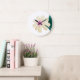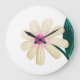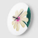 Este relógio de parede único apresenta uma bela flor de ventre. Seria um presente excelente para um amante da natureza.