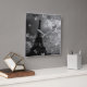 Torre Eiffel em fotos a preto e branco entre o céu nublado da noite. Espaço para escrever PARIS ou outra coisa do lado. Rosto do relógio do número romano. Se o fazer mudar, verifique se a imagem numérica está no topo. Altere o relógio quadrado para estilos de relógio redondos.