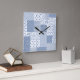 Relógio de Parede Acrílica Quadrado, com uma nostálgica manta de retalhos Faux de padrões florais, de cheques e bolinhas, em Azul e Branco Indigo. Parte da coleção Posh e Painterly 'Indigo', esse padrão pode ser facilmente ajustado para ajustado qualquer Relógio de Parede.
