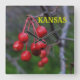 Uma foto de um close-up do Red Berries que é brilhante e colorido pendurado em um punhado em uma árvore. Que é brilhante e colorido com um fundo verde em Hutchinson Kansas Kansas Kansas USA. Isso é num Relógio de Parede Quadrado.