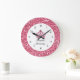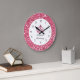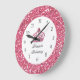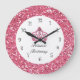 Bonito relógio de parede cor-de-rosa com espaço em monogramas, você pode adicionar qualquer nome como princesa, junto com simulação de joia da coroa roxa rosa e falso brilho na face do relógio nesta design de decoração de parede para sua cozinha, sala de jantar, dormitório.
