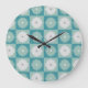 Este Meio século Moderno Flores Geométricas do Relógio de Paredes Redondos é um meio século moderno de pegar a botânica! Este aqua baleado e design de tabuleiro de xadrez têm flores mod alternadas de aqua e cinzas de pomba em cada quadrado. As flores das cinzas das pombas têm cinzas quadradas mais escuras e as flores do aqua têm cinzas das pombas. Vai lembrá-lo de rabiscar no seu caderno no ensino médio, se você fosse um estudante do ensino médio com habilidades de rabiscar. Este padrão atômico, minimalista, irá adicionar um traço de estilo vintage ao seu dia. Você vai querer que seja seu melhor amigo para sempre.