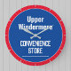 Relógio de Parede para um Compro de aldeia, Lojas locais, Loja de conveniência ou Saída de varejo. Edite a design para alterar o texto para se adequar. Cor azul e vermelha.