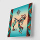 Este é um único "Um dos tipos" Relógio de Muro do Sudoeste de Kokopelli! Ele apresenta um Kokopelli Sudoeste tocando flauta e dançando em volta de um cacto debaixo do Sol...sobre um fundo turquesa com Turquesa, Laranja e Fronteiras Negras!