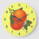 Duas laranjas maduras em um galho com pequenas flores brancas florindo contra folhas verdes, e números opcionais azuis. Clique em Personalizar para adicionar seu nome ou mensagem, alterar as cores do plano de fundo e até salvar seu design para mais tarde.