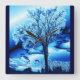 Árvore bonito de gelo em azul parece incrível neste relógio de parede