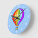 Relógio de parede de balão de ar quente para sala de crianças ou usina. Design de arco-íris colorida personalizada com nome de criança.