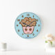 Lindo relógio de parede caprichoso para quarto de crianças. O design apresenta um doce rosto sorridente kawaii de cupcake e grandes números de 12 horas. É personalizado com um nome personalizado discretamente impresso sob o número 6, o que adiciona um toque pessoal sutil. Faz um maravilhoso item de decoração de parede para um berçário ou uma casa de um amante de cupcakes.
